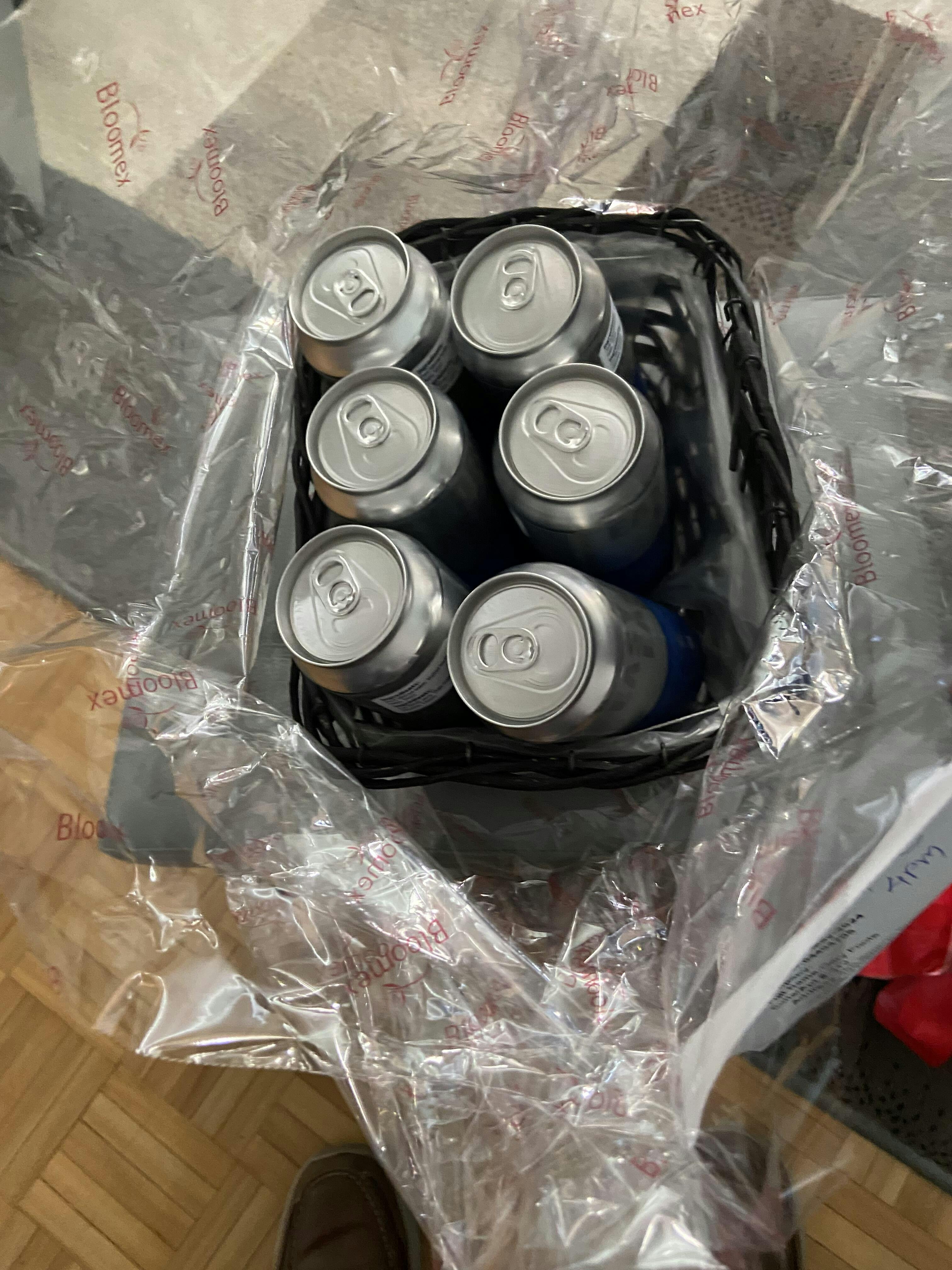 Gift Basket - Easy Drinking Blonde (6 Tall Cans), Coaster and Pretzels